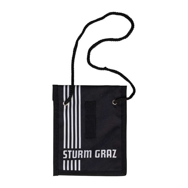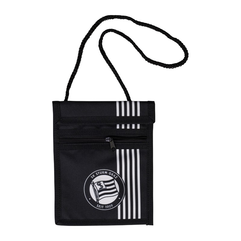 Der Brustbeutel aus Nylon verfügt über ein Klettverschluss-Hauptfach, Reißverschluss-Vorfach, Gürtelschlaufe und eine Umhängekordel.