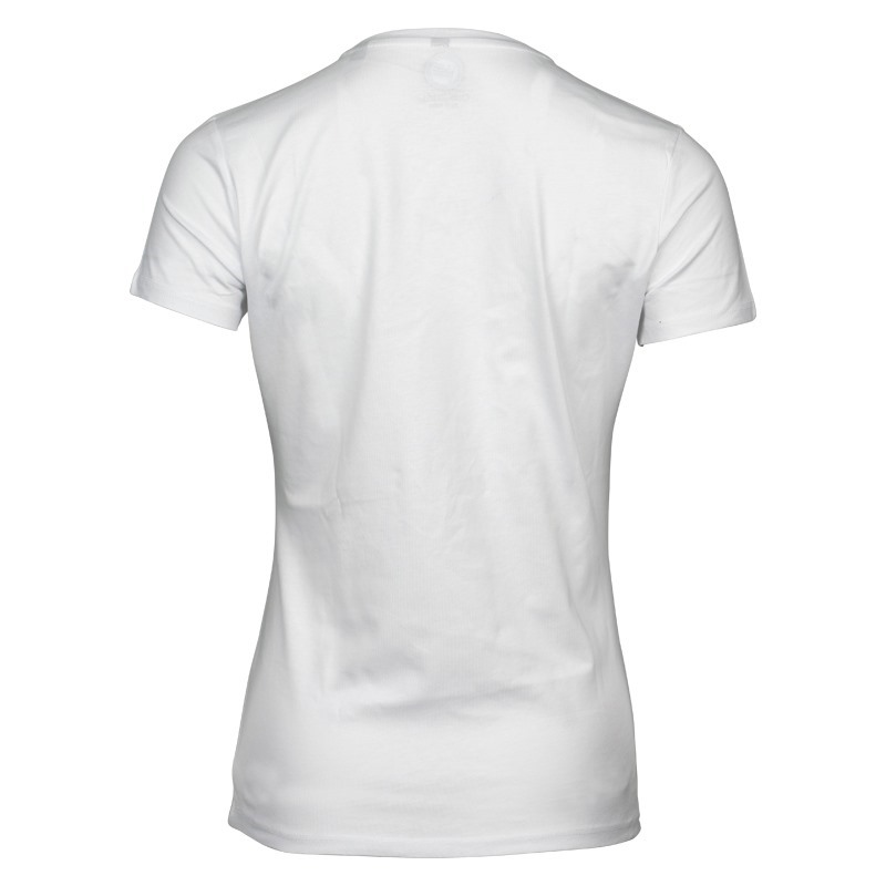 Damen T-Shirt mit V-Ausschnitt und ST Logo Aufdruck.