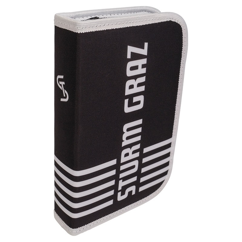 Sturm Graz Federmappe mit Hauptfach und weiterem aufklappbaren Fach, Stundenplanfach und Reißverschluss.
