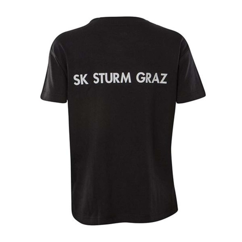 In der Freizeit im Trikot unterwegs, in der Schule in diesem coolen schwarzen Shirt mit SK STURM Logo. Zeig deinen Vereinsstolz!