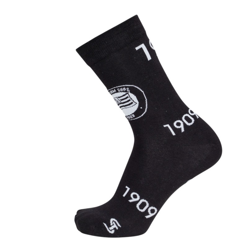 Ob für dich selbst, als Geschenk, ob Jung oder Alt, mit den SK Sturm Graz Socken punktest du überall und wertest jedes Outfit auf. Einen ganz klaren Kontrast bieten die weißen Logos auf schwarzem Hintergrund, vom Vereinslogo-Rund bis hin zu ST-Logo, wie auch das Gründungsjahr und Fahne-ST ist alles dabei.