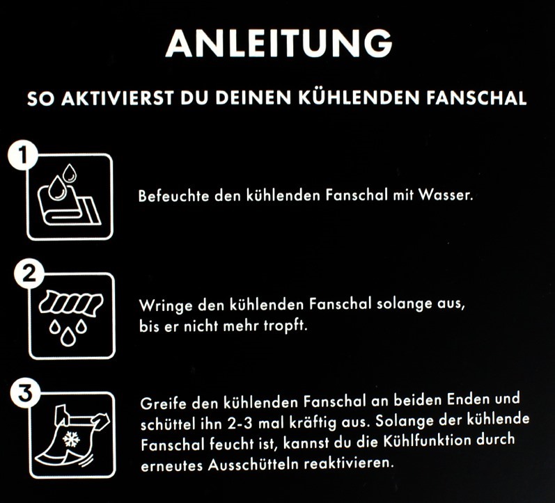 Mit dem innovativen Kühlschal behältst du auch bei extremen Temperaturen einen kühlen Kopf. In drei einfachen Schritten entfaltet der Schal seine Kühlwirkung