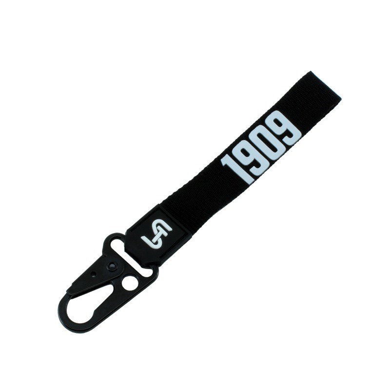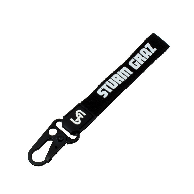 Das kurze Sturm Graz Lanyard passt perfekt an Deinen Schlüsselbund. Der Metallkarabiner hält Deine Schlüsselringe verlässlich zusammen. Abgerundet wird das Lanyard durch einen hochwertigen, erhabenen STURM GRAZ-Druck auf der Vorder- und 1909-Druck auf der Rückseite.