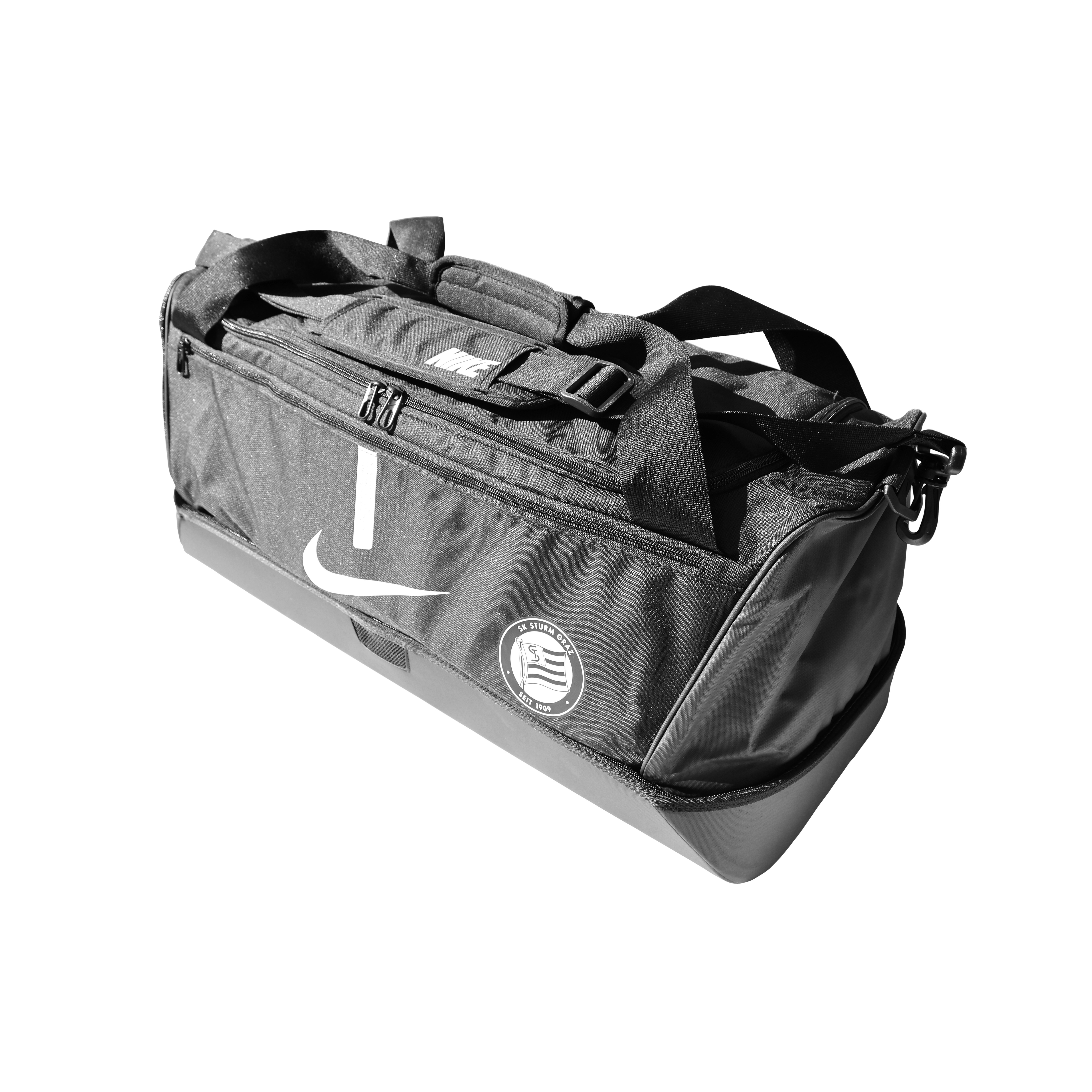 Unsere Nike Teamtasche mit strapazierfähigem Design sorgt für Ordnung. Der verstärkte Boden schützt deine Ausrüstung und auf dem Weg zum Spielfeld kannst du zwischen verschiedenen Trageoptionen wählen.