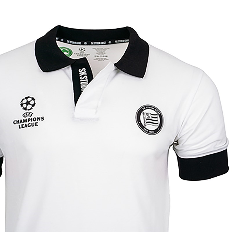 Hol' dir unser schwarz/weisses Champions League Polo aus reiner Bio-Baumwolle.