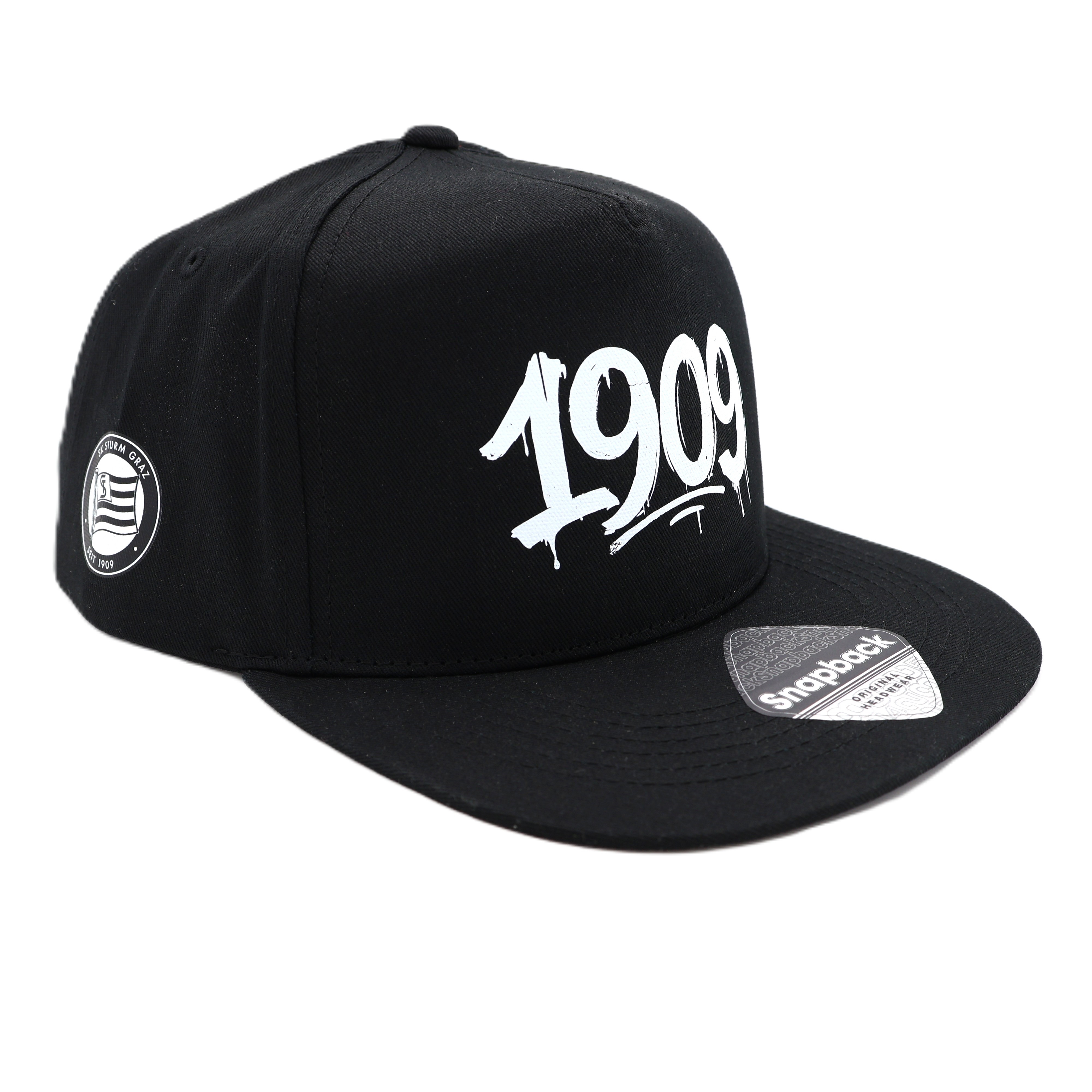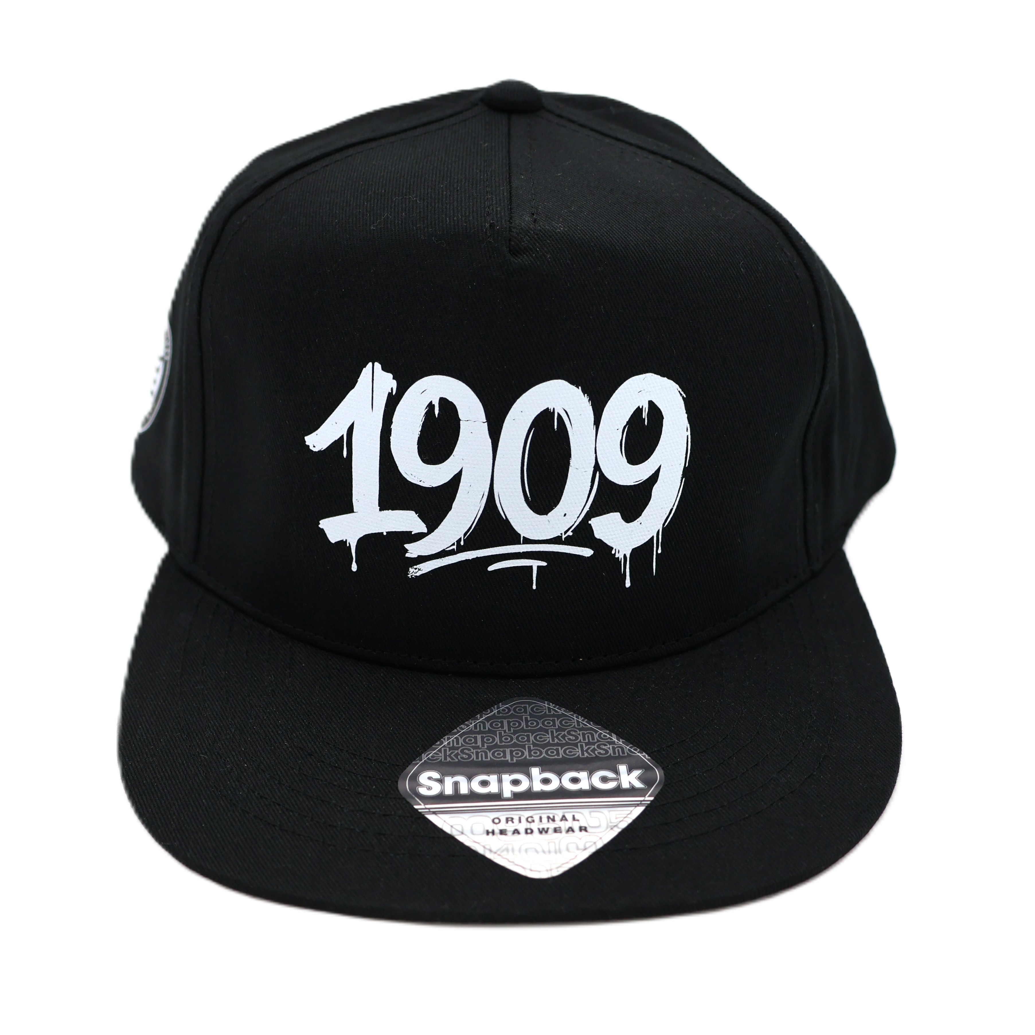 Coole Flatcap für Kids mit Snapbackverschluss, aufgedrucktem Logo und 1909 im Graffiti Look.