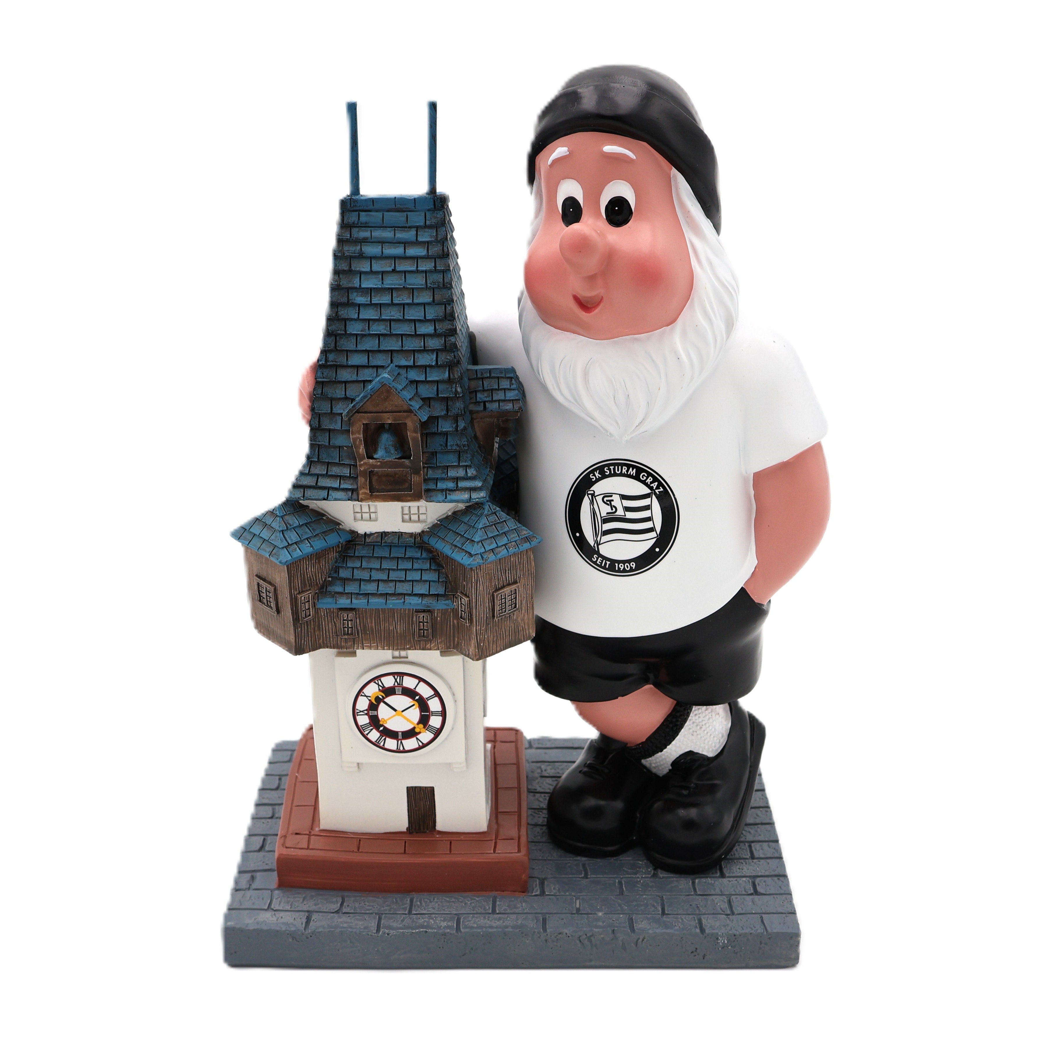 Dieser charmante Gartenzwerg im Sturm Graz Design bringt nicht nur gute Laune, sondern auch echte Fanliebe direkt vor Deine Haustür. Mit seinem detailreichen Uhrturm ist er ein echter Blickfang – perfekt für Garten, Balkon oder als originelles Geschenk für jeden Sturm-Fan.