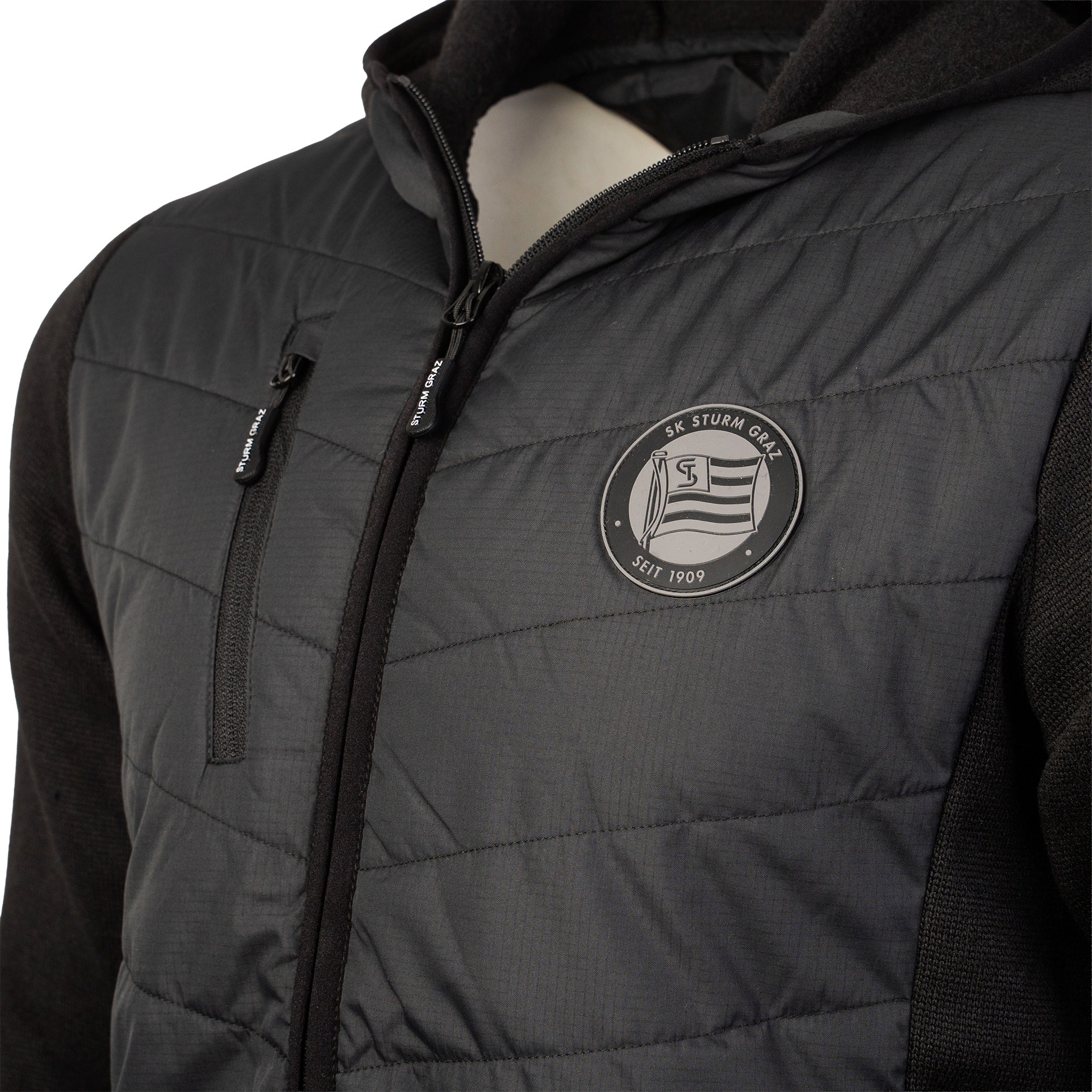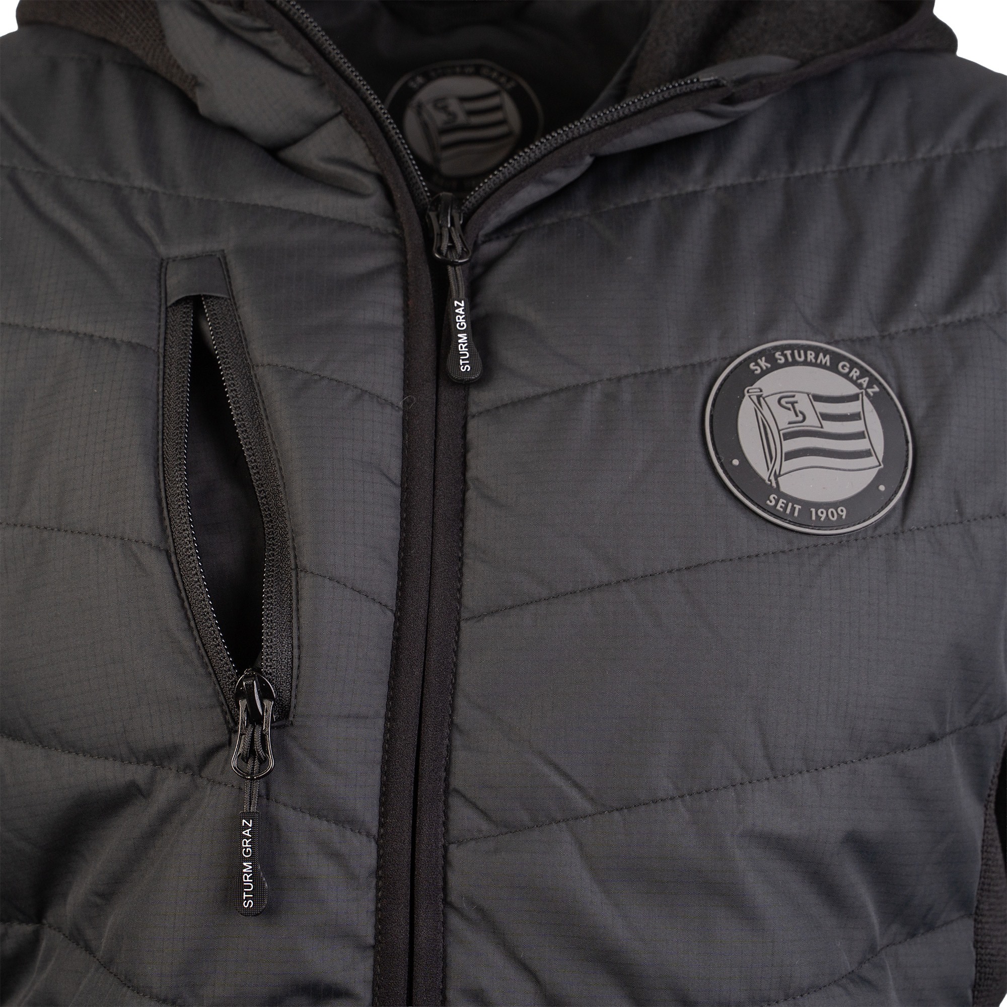 Zeig Deine Verbundenheit zum SK Sturm Graz – mit der eleganten Hybridjacke in klassischem Schwarz. Ob im Stadion, in der Stadt oder beim Sport: Diese Jacke bietet optimalen Tragekomfort, schützt vor Wind und Wetter und überzeugt mit sportlichem Design und dezentem Vereinslogo. Perfekt für echte Fans mit Stil!