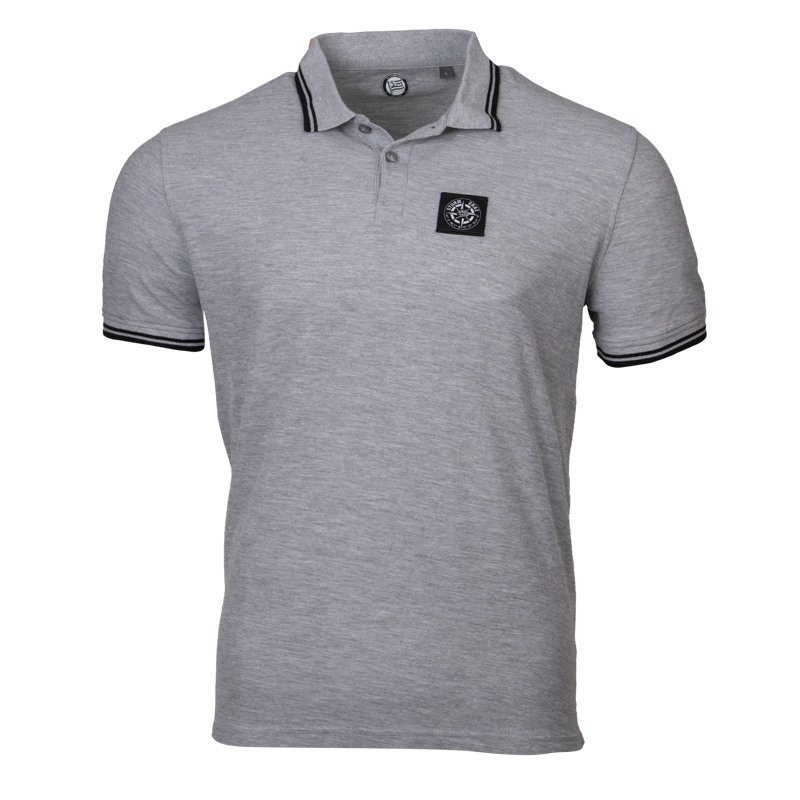 Hol' dir unser zeitloses Black Home Polo in grau mit kurzen Ärmeln und Kontrastfarben.