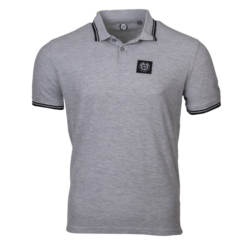 Hol' dir unser zeitloses Black Home Polo in grau mit kurzen Ärmeln und Kontrastfarben.