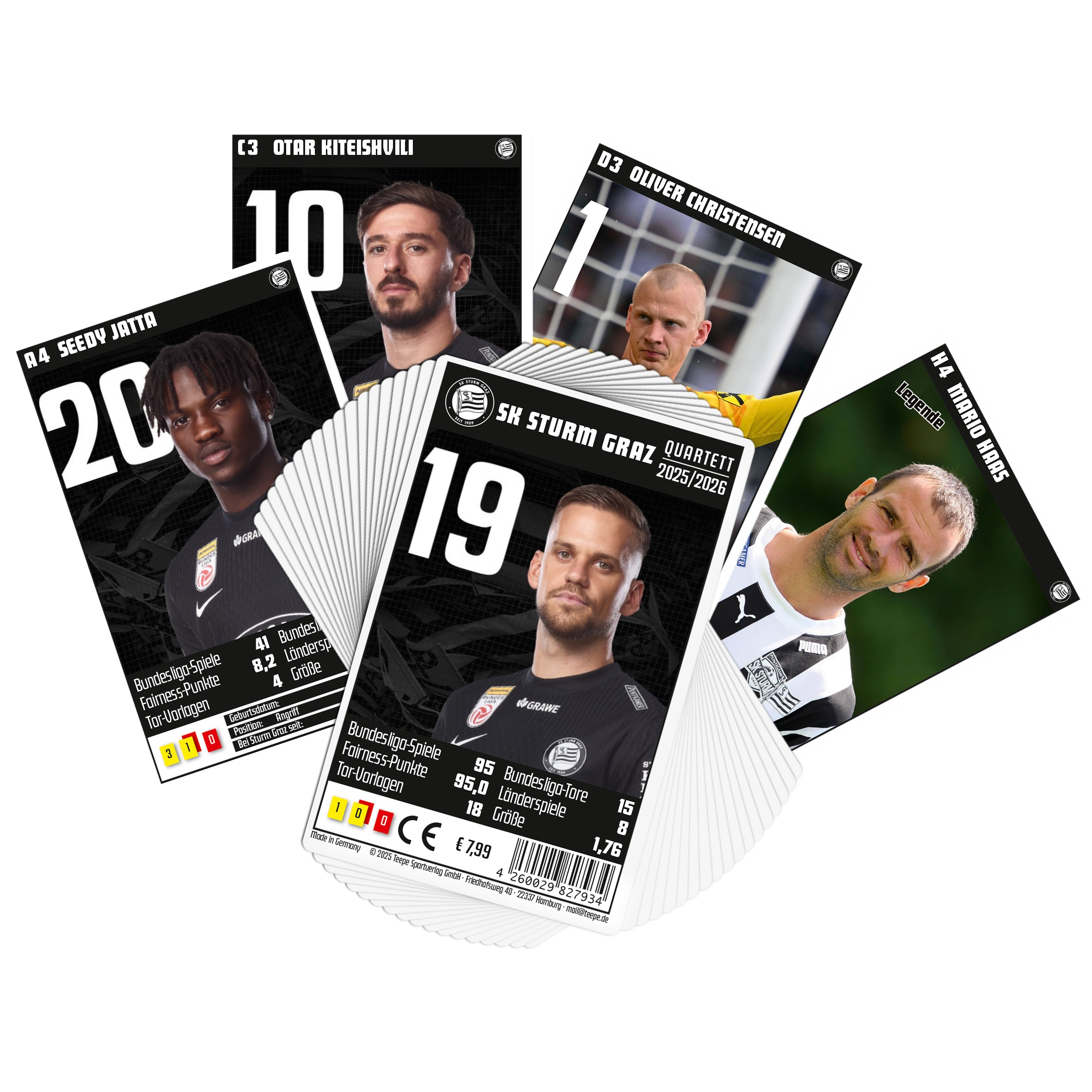 Hol dir das SK Sturm Graz Quartett 2025/2026 – das ultimative Sammelspiel für echte Schwoaze!