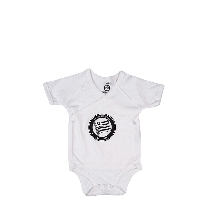 Unser SK Sturm Graz Wickelbody Logo vereint kuschelweiche Baumwolle mit echtem Fanherz. Einfach anzuziehen, sanft zur Haut – und perfekt für kleine Fans, die schon groß träumen.