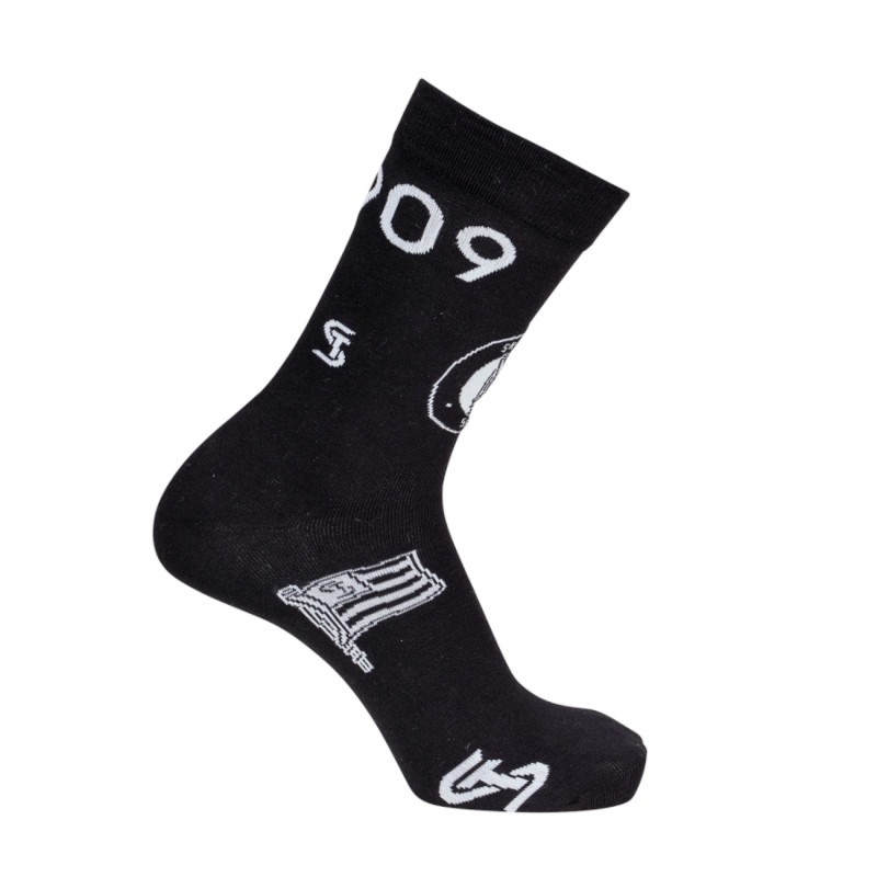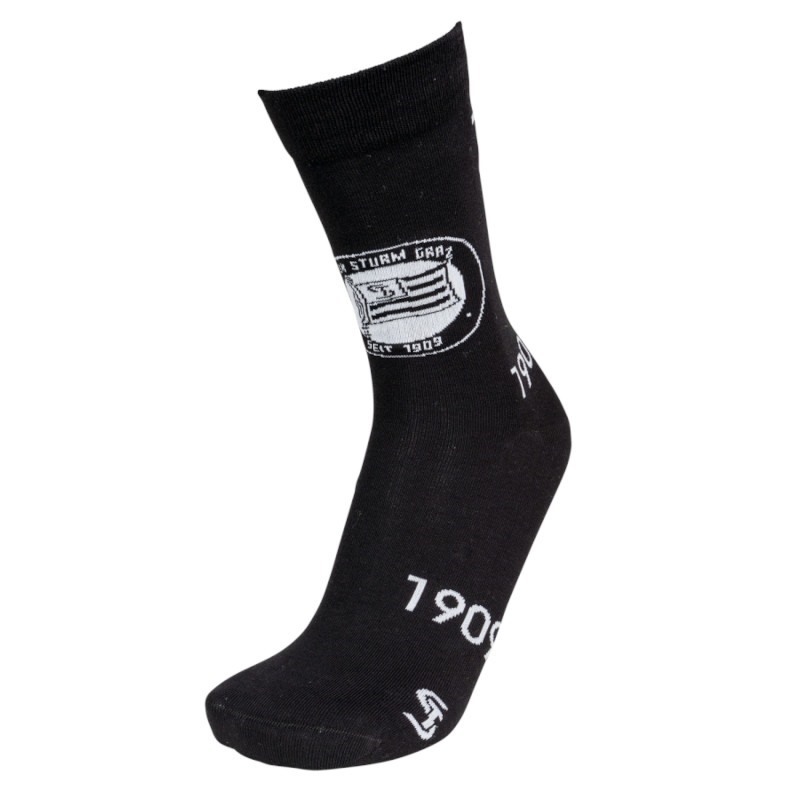 Ob für dich selbst, als Geschenk, ob Jung oder Alt, mit den SK Sturm Graz Socken punktest du überall und wertest jedes Outfit auf. Einen ganz klaren Kontrast bieten die weißen Logos auf schwarzem Hintergrund, vom Vereinslogo-Rund bis hin zu ST-Logo, wie auch das Gründungsjahr und Fahne-ST ist alles dabei.