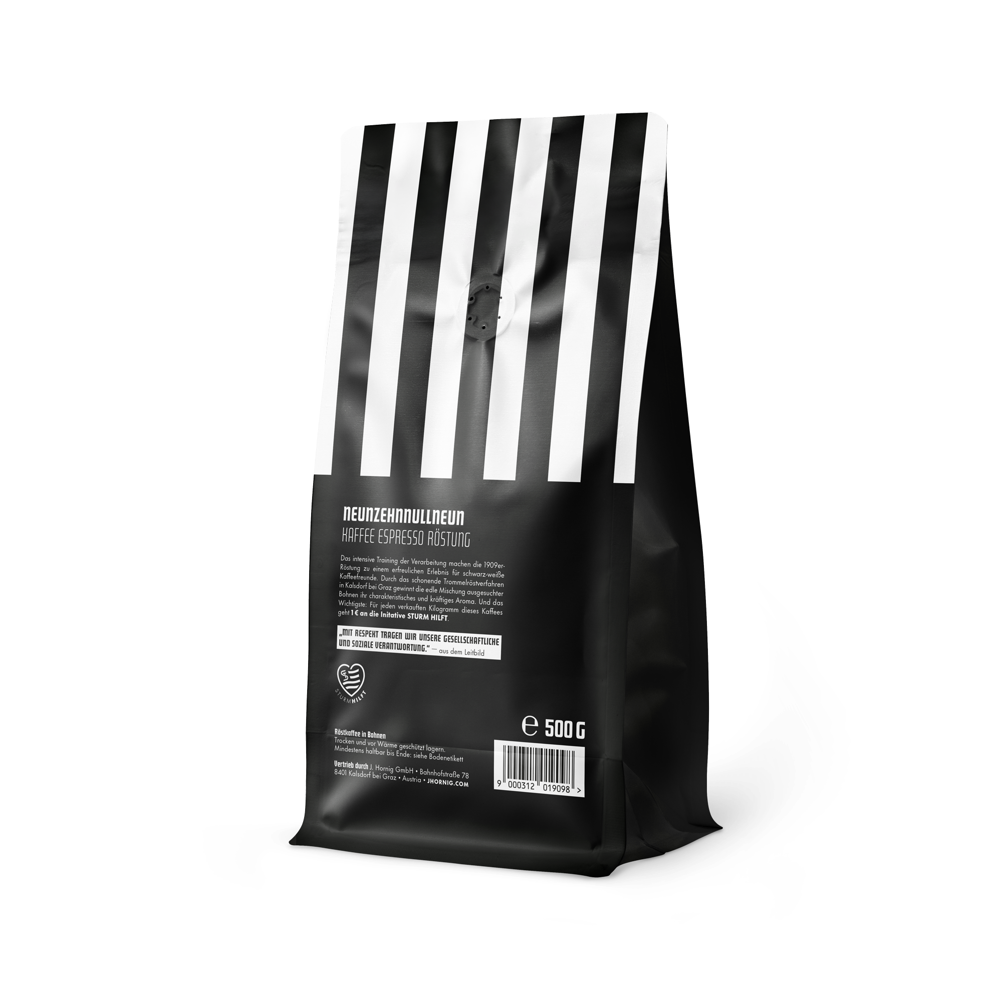 Das intensive Training der Verarbeitung machen die 1909er-Röstung zu einem erfreulichen Erlebnis für schwarz-weiße Kaffeefreunde. Durch das schonende Trommelröstverfahren in Kalsdorf bei Graz gewinnt die edle Mischung ausgesuchter Bohnen ihr charakteristisches und kräftiges Aroma. Und das Wichtigste: Für jeden verkauften Kilogramm dieses Kaffees geht 1 € an die Initiative STURM HILFT.