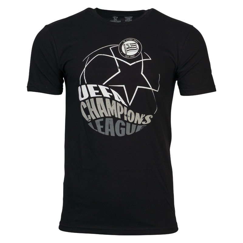 Hol' dir das schwarze T-Shirt mit Champions League Motiv auf der Vorderseite.