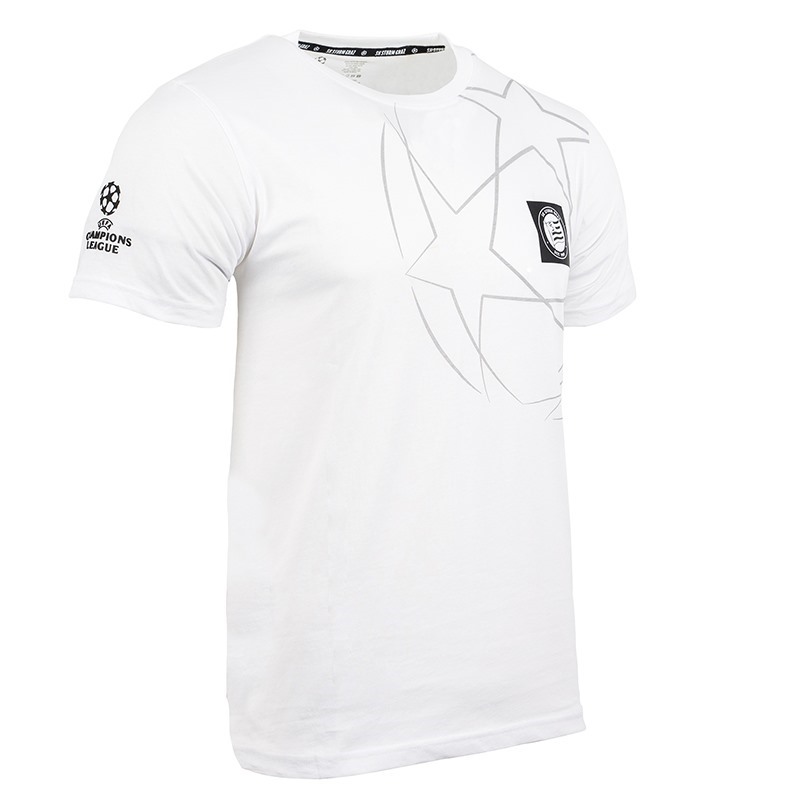 Hol' dir unser weisses Champions League Starball Shirt aus reiner Bio-Baumwolle.
