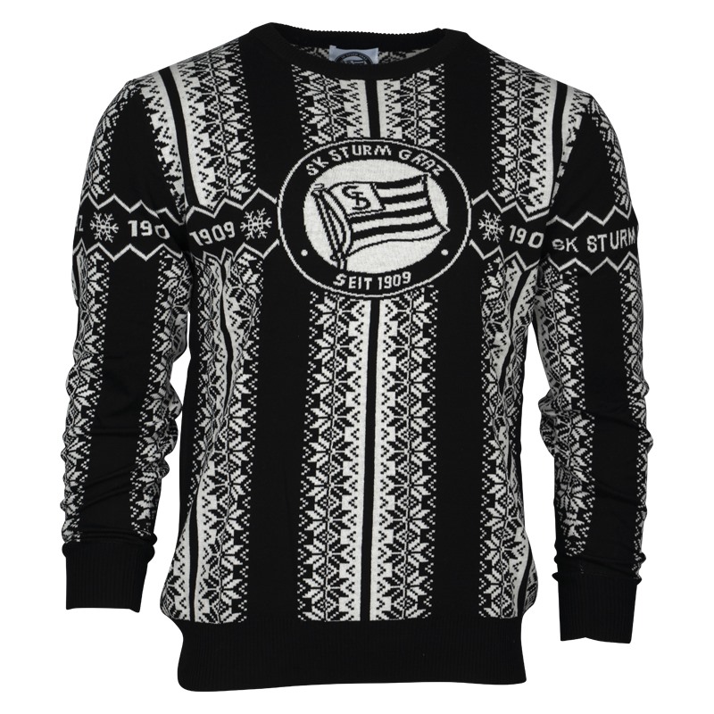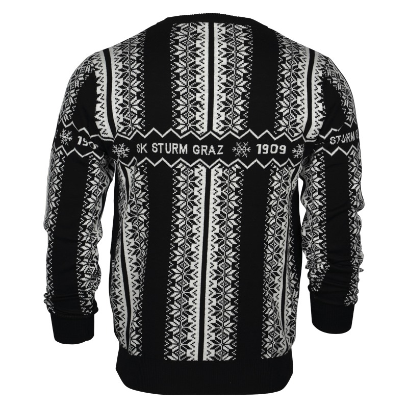 Der typische Norweger-Strickpullover mit großem SK Sturm Logo und Schriftzug.