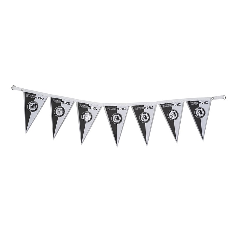 SK Sturm Graz Wimpelkette mit sieben individuellen Wimpel zu je ca. 7,5 cm x 13,5 cm.